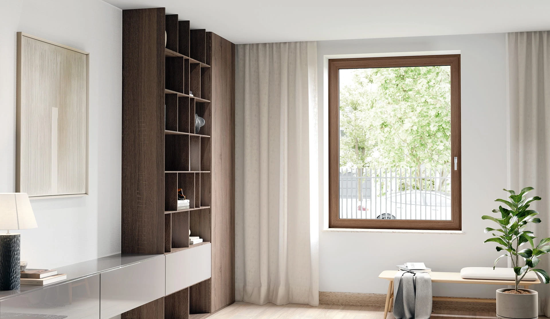 Il sistema consente la realizzazione di finestre a battente, a ribalta, porte-finestre con soglia ribassata e soluzioni scorrevoli. L’ampia scelta di finiture permette un’integrazione estetica armoniosa con sistemi in PVC-U e alluminio Schüco, rendendolo adatto sia a nuove costruzioni che a ristrutturazioni.